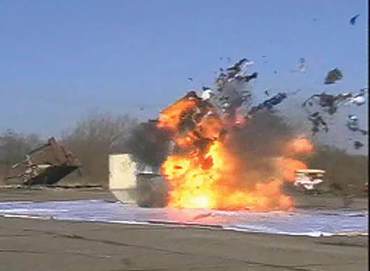 Despite packing the radio into a suitcase with clothes surrounding it and then other packed suitcases surrounding the prime suitcase, the results of the debris were the same – no sign of the PCB. We did vary the charge weight on some tests as a comparison. The only time we got a small piece of debris from the PCB was Test 15 when we used only 150 grams of explosive, but in this case the overpressure and impulse gauges confirmed that this would be insufficient to cause the plane to break up.