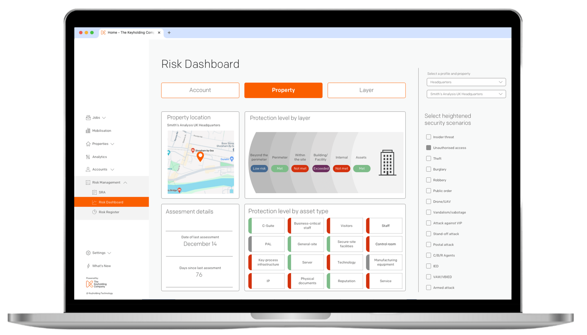 This is brought to life through TKC’s Risk Management Tool (RMT). The technology combines in-person consultations with rapid digital site risk assessments. The RMT’s dynamic risk dashboards allow clients to analyse sites at a granular level and evaluate security measures to ensure correct outcomes.